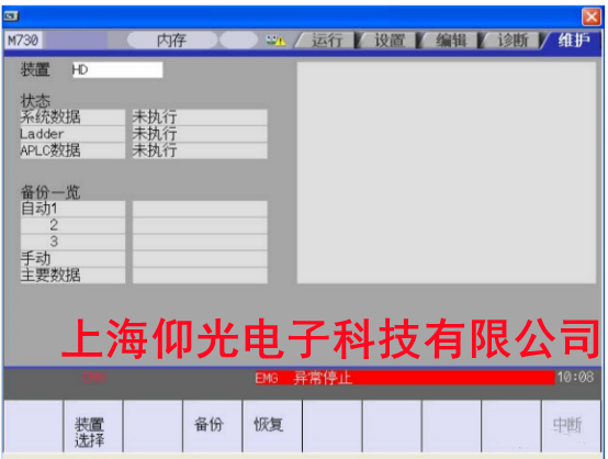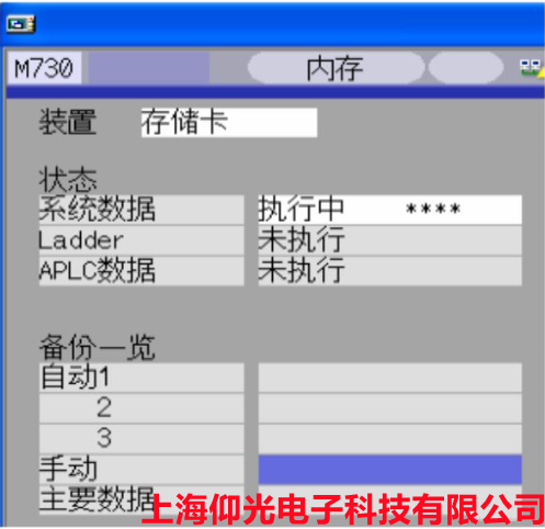 4.選擇完裝置后,按下“備份”→“INPUT”→“Y”,此時屏幕顯示“備份執(zhí)行中”。